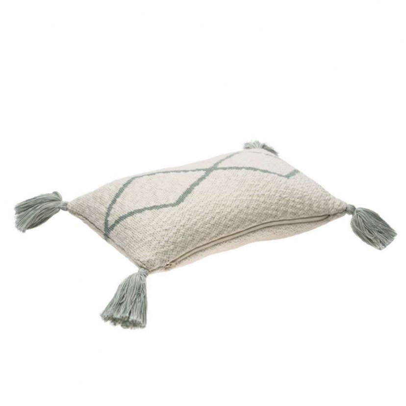 Μαλακό πλεκτό μαξιλάρι σχεδιασμένο με το κλασικό σχέδιο ρόμβων σε φινετσάτες αποχρώσεις. Το Διακοσμητικό Μαξιλάρι Little Oasis είναι διακοσμημένο με χαριτωμένες φούντες στις γωνίες. Χάρη στο φερμουάρ, μπορείτε να αφαιρέσετε το κάλυμμα και να το πλύνετε στο πλυντήριο. Έχει φτιαχτεί χειροποίητα, για αυτό ενδέχεται να παρουσιάζονται μικρές αποκλίσεις στο σχέδιο και στο μέγεθος από αυτό της φωτογραφίας. Κατασκευασμένο από φυσικό βαμβάκι και βαμμένο με μη τοξικές βαφές. Ελαφρύ χάρη στη μαλακή και ευέλικτη σύνθεσή του. Αυτό το προϊόν συμμορφώνεται με όλους τους κανονισμούς ποιότητας και ασφάλειας για τα παιδιά. Πιστοποίηση ISO 9001, ISO 14001, ISO 18001. Ένα φιλικό προς το περιβάλλον προϊόν.