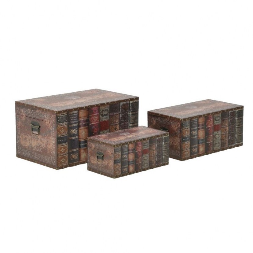 To Σετ Μπαούλα 3-50-899-0012 Με Αποθηκευτικό Χώρο (3τμχ) είναι ιδανικό για χρήση σε χώρους κλασικής αισθητικής. Διαθέτει σχέδιο παλιά βιβλία και επένδυση pu. Προσφέρει μεγάλο αποθηκευτικό χώρο για διάφορα αντικείμενα. Το σετ αποτελείται από τρία μπαούλα διαφορετικών διαστάσεων.