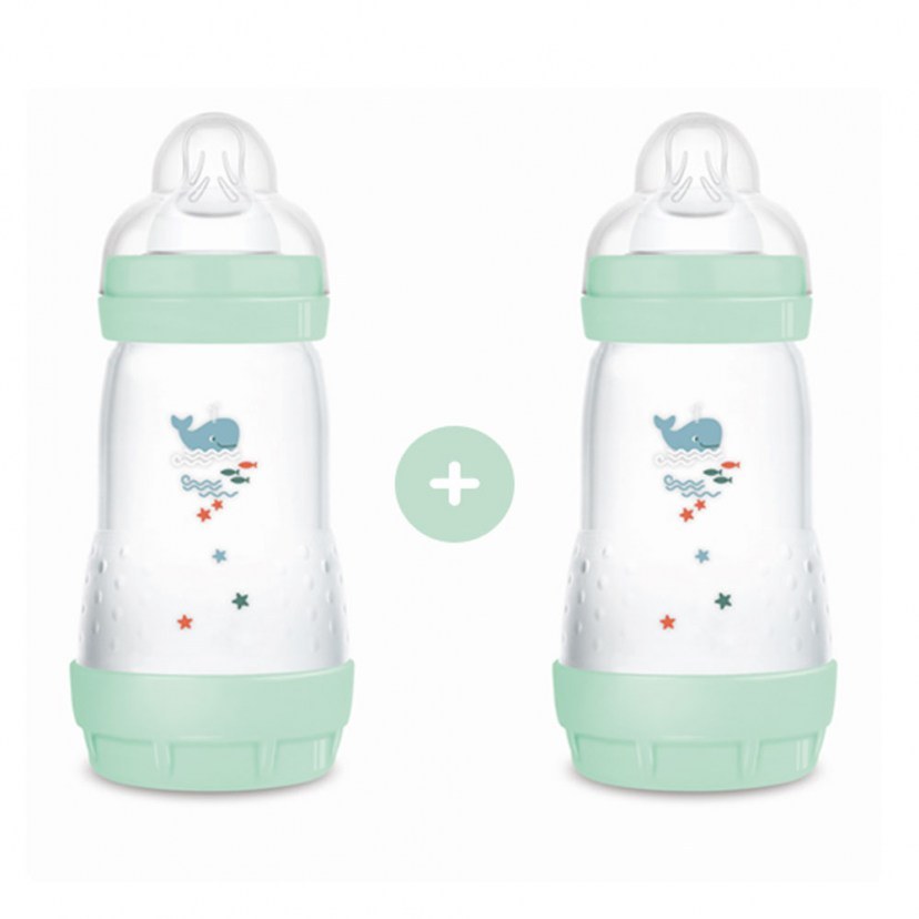 Μπιμπερό Easy Start Anti-Colic Boy 355SΒc (Σετ 2τμχ) 260ml Με Θηλή Σιλικόνης Skin Soft 2+ Μηνών Turqoise Mam