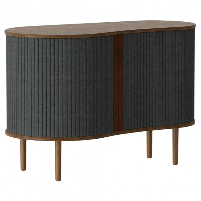 O Μπουφές Audacious Horizons S διαθέτει ειδικές πόρτες που γλιστρούν γύρω από την άκρη του ντουλαπιού, επιτρέποντάς σας να επιλέξετε πόσο από το εσωτερικό θέλετε να εμφανίσετε. Είναι κατασκευασμένος από μασίφ ξύλο δρυός και MDF, ενώ τα ντουλάπια είναι επενδυμένα με ειδικά επεξεργασμένο ύφασμα που προέρχεται από ανακυκλωμένα μπουκάλια. Το προϊόν παραδίδεται αμοντάριστο.