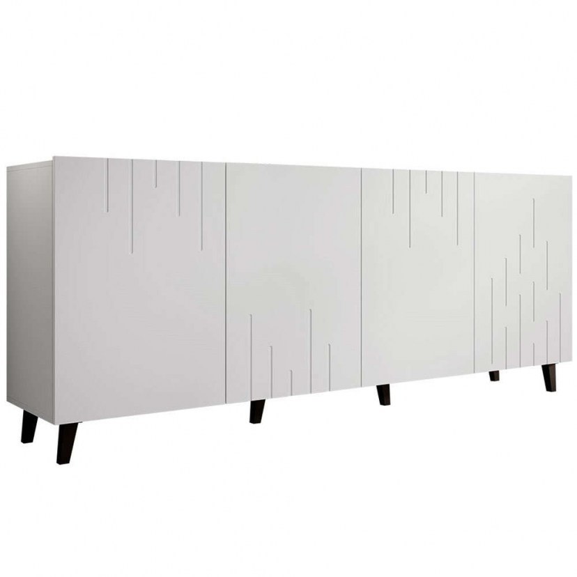 Ο Mπουφές Bari είναι μια εξαιρετική επιλογή για τη μοντέρνα διακόσμηση του σαλονιού ή της τραπεζαρίας σας, συνδυάζοντας στυλ με πρακτικότητα. Με τον σύγχρονο σχεδιασμό του, αυτός ο μπουφές προσφέρει ιδανικούς αποθηκευτικούς χώρους για όλα τα αντικείμενά σας. Διαθέτει τέσσερα ντουλάπια, το καθένα εξοπλισμένο με ράφι στο εσωτερικό του, προσφέροντας ευρύχωρους και οργανωμένους χώρους αποθήκευσης. Η κατασκευή του από μοριοσανίδα πάχους 1,6 cm εξασφαλίζει ανθεκτικότητα και μακροχρόνια χρήση, ενώ τα πλαστικά πόδια προσθέτουν μια σύγχρονη και πρακτική πινελιά. Ευρωπαϊκής προέλευσης. Το προϊόν παραδίδεται αμοντάριστο.