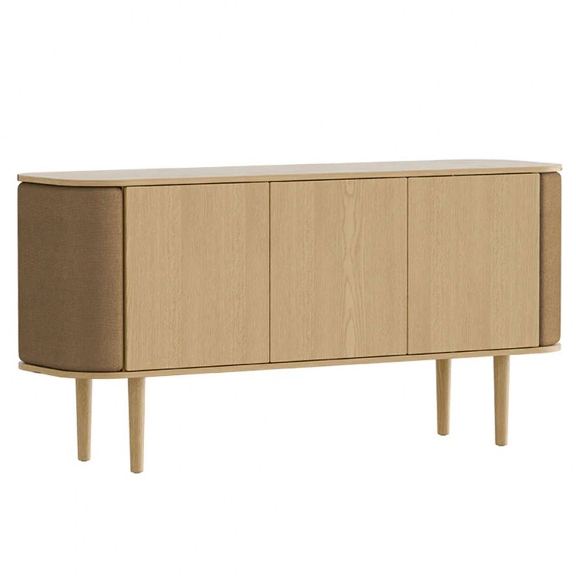 Ο Μπουφές Treasures Horizons είναι κατασκευασμένος από μοριοσανίδα και μασίφ ξύλο δρυός, ενώ οι καμπύλες πλευρές του είναι επενδυμένες με ανακυκλωμένο ύφασμα, που του εξασφαλίζει μια απαλή απτική πινελιά. Τα πλαϊνά του μπουφέ ανοίγουν σαν φτερά, που αποθηκεύουν κομψά το εκλεκτό λικέρ ή τα βιβλία σας. Οι αποθηκευτικοί χώροι στο κέντρο του μπουφέ έχουν ράφι στο εσωτερικό, καθιστώντας τα την τέλεια λύση αποθήκευσης για τα κεραμικά και πορσελάνινα σερβίτσια σας. Το προϊόν παραδίδεται αμοντάριστο. Διατίθεται σε πολλές υπέροχες αποχρώσεις, ώστε να επιλέξετε την αγαπημένη σας!