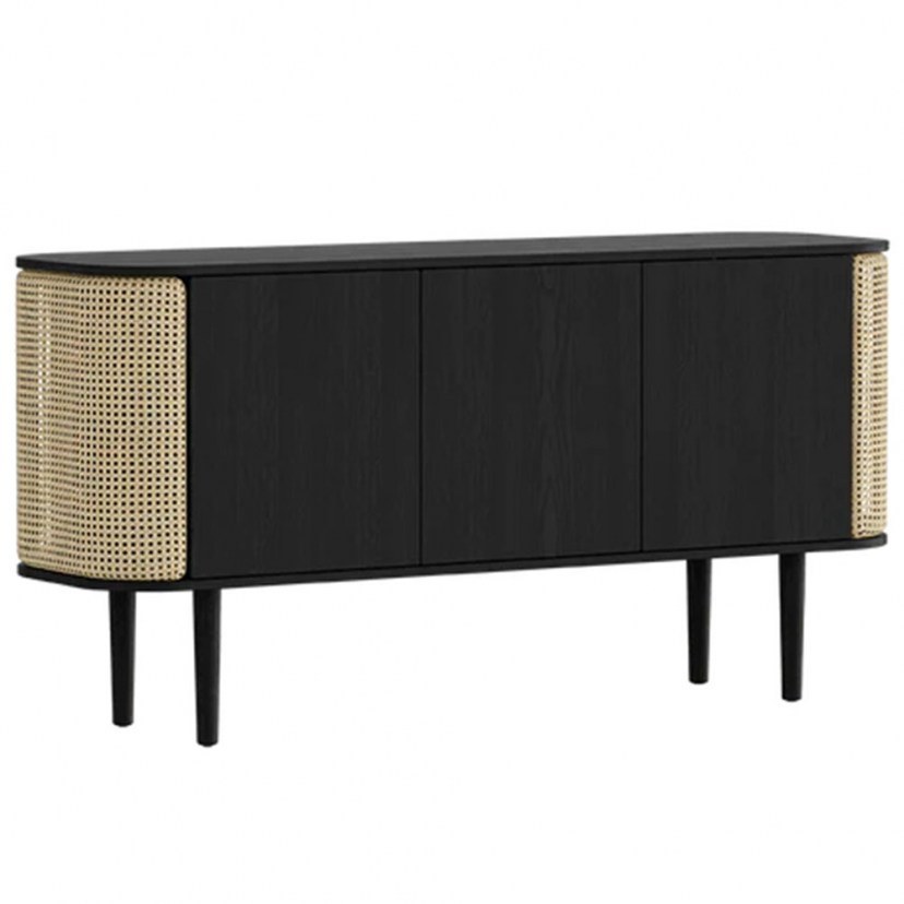 Ο Μπουφές Treasures Venetian Cane διαθέτει δύο πλαϊνά ντουλάπια που ανοίγουν σαν φτερά και μπορούν να αποθηκεύσουν κομψά το εκλεκτό λικέρ ή τα βιβλία σας. Οι αποθηκευτικοί χώροι στο κέντρο του μπουφέ έχουν ράφι στο εσωτερικό, καθιστώντας τα την τέλεια λύση αποθήκευσης για τα κεραμικά και πορσελάνινα σερβίτσια σας. Είναι κατασκευασμένος από ξύλο οξιάς και μοριοσανίδα και τα πλαινά ντουλάπια είναι κατασκευασμένα από ζαχαροκάλαμο. Το προϊόν παραδίδεται αμοντάριστο.