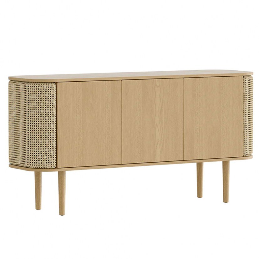 Ο Μπουφές Treasures Venetian Cane διαθέτει δύο πλαϊνά ντουλάπια που ανοίγουν σαν φτερά και μπορούν να αποθηκεύσουν κομψά το εκλεκτό λικέρ ή τα βιβλία σας. Οι αποθηκευτικοί χώροι στο κέντρο του μπουφέ έχουν ράφι στο εσωτερικό, καθιστώντας τα την τέλεια λύση αποθήκευσης για τα κεραμικά και πορσελάνινα σερβίτσια σας. Είναι κατασκευασμένος από ξύλο οξιάς και μοριοσανίδα και τα πλαινά ντουλάπια είναι κατασκευασμένα από ζαχαροκάλαμο. Το προϊόν παραδίδεται αμοντάριστο.