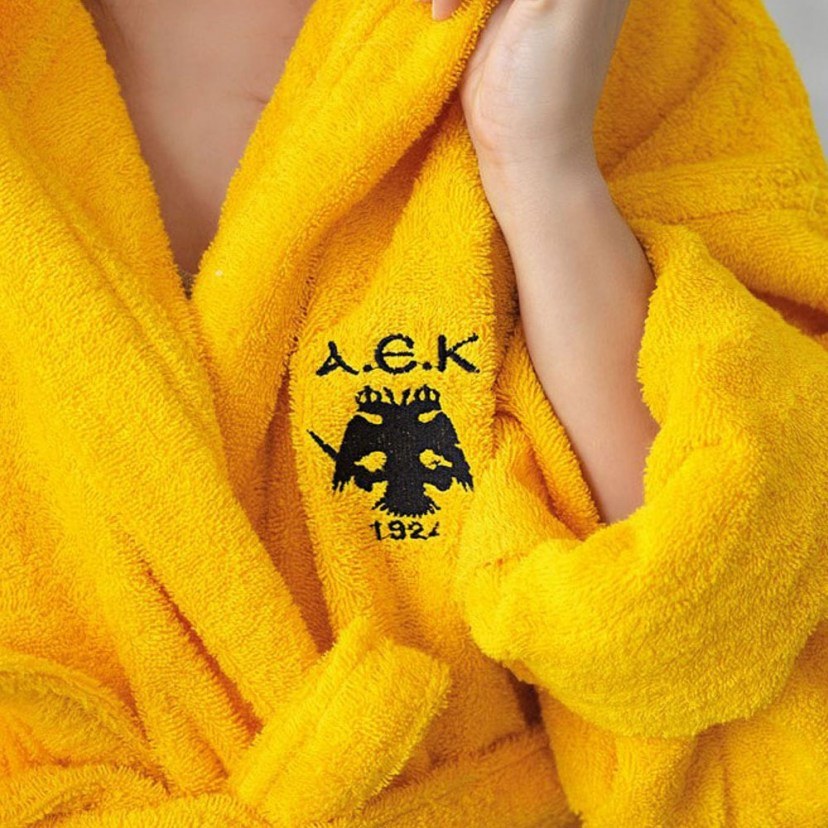«ΑΕΚ σ’ αγαπώ» θα τραγουδάτε και κατά την διάρκεια αλλά και αφού τελειώσετε το μπάνιο σας, καθώς θα φοράτε το Μπουρνούζι Α.Ε.Κ. 1924 Adults. Διαθέτει το έμβλημα και τα χρώματα της αγαπημένης σας ομάδας, γεγονός, που θα σας κάνει να το λατρέψετε. Φέρει κουκούλα. Χάρη στη βαμβακερή σύνθεσή του είναι ανθεκτικό και απορροφητικό. Πλένεται στους 30 βαθμούς Κελσίου και σιδερώνεται μέχρι τους 150 βαθμούς Κελσίου. Απαγορεύεται το στεγνό καθάρισμα, η χρήση ισχυρού λευκαντικού και χλωρίου.