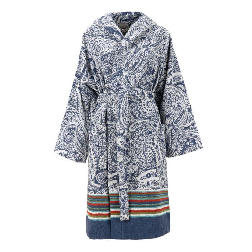 Υποδεχθείτε την πολυτέλεια και την άνεση με το Mπουρνούζι Noto από τον επώνυμο οίκο Bassetti. Αυτό το μοναδικό μπουρνούζι, βαμμένο σε ζακάρ, προσφέρει μια αίσθηση απαλότητας και αφράτου υφάσματος. Κατασκευασμένο από 100% βαμβάκι (380 g/m²), είναι ανθεκτικό και απορροφητικό, προσφέροντας στην καθημερινή σας ρουτίνα ένα άγγιγμα πολυτέλειας. Η εξαιρετική κατασκευή από βαμβάκι που έχει βαφεί με νήματα ζακάρ δίνει στο μπουρνούζι μια χαρακτηριστική εμφάνιση Bassetti. Το μοτίβο paisley, τονίζεται από χρωματιστές κορδέλες και μπορντούρες με εφέ κεντήματος, προσθέτοντας έναν εξαιρετικό αισθητικό παράγοντα. Οι έντονοι χρωματικοί συνδυασμοί δημιουργούν μια ζωντανή και ενδιαφέρουσα εικόνα. Είτε χρησιμοποιείτε το μπουρνούζι για το σπίτι, τον ξενώνα ή το κέντρο ευεξίας, θα αγαπήσετε την υψηλής ποιότητας κατασκευή και την εξαιρετική άνεση που προσφέρει. Πλένεται στο πλυντήριο έως και 40°C και σιδερώνεται σε μέτρια θερμοκρασία (μέγ. 150°C), εξασφαλίζοντας εύκολη συντήρηση.