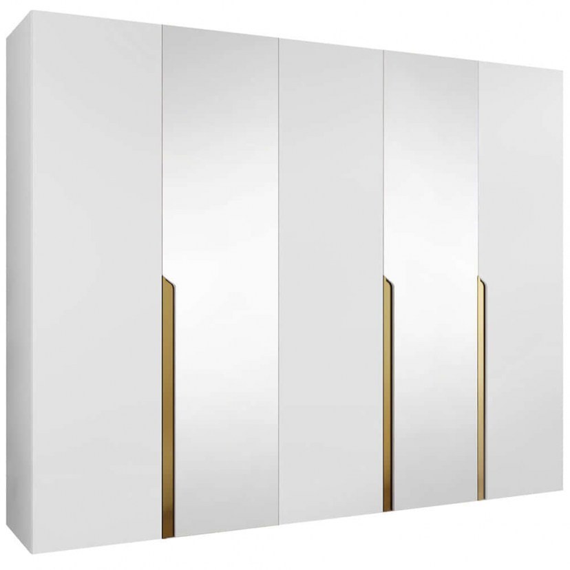 Ντουλάπα Πεντάφυλλη Με Καθρέπτη Mila I 163088159 250x52x202cm White-Gold