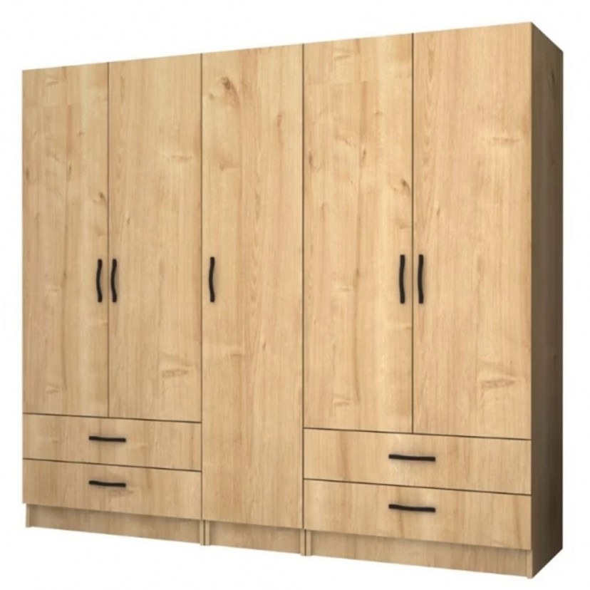 Η Πεντάφυλλη Ντουλάπα Ricardo συνδυάζει μοντέρνο σχεδιασμό, ποιότητα και εργονομία, κάνοντάς την ιδανική επιλογή για προσωπική αλλά και επαγγελματική χρήση, όπως σε ξενοδοχεία, ξενώνες, Airbnb και άλλους επαγγελματικούς χώρους. Στο εσωτερικό της, φέρει δύο μεταλλικές βέργες για κρεμάστρες και πολλά ράφια για να οργανώσετε τα ρούχα και τα προσωπικά σας αντικείμενα με άνεση. Στο κάτω μέρος διαθέτει τέσσερα πρακτικά συρόμενα συρτάρια, προσφέροντας επιπλέον αποθηκευτικό χώρο. Τα πόμολα είναι κατασκευασμένα από πολυπροπυλένιο υψηλής ποιότητας σε μαύρο χρώμα, εξασφαλίζοντας κομψότητα και ανθεκτικότητα. Οι ντουλάπες μπορούν να τοποθετηθούν και ανεξάρτητα, προσφέροντας ευελιξία στον σχεδιασμό του χώρου. Η ντουλάπα Ricardo είναι κατασκευασμένη από μοριοσανίδα με επένδυση μελαμίνης εξαιρετικής ποιότητας, προσφέροντας υψηλές αντοχές στη φθορά και στον χρόνο. Τα υλικά κατασκευής είναι αβλαβή για το περιβάλλον και την υγεία, πληρούν τα ευρωπαϊκά πρότυπα ποιότητας Ε1 και δεν περιέχουν καρκινογόνες ουσίες, καθιστώντας τη μία ασφαλή και βιώσιμη επιλογή για κάθε χώρο. Το προϊόν παραδίδεται αμοντάριστο.