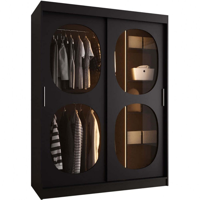 Ντουλάπα Συρόμενη Με Φως Led Bahrajn II 163054749 150x62x200cm Black