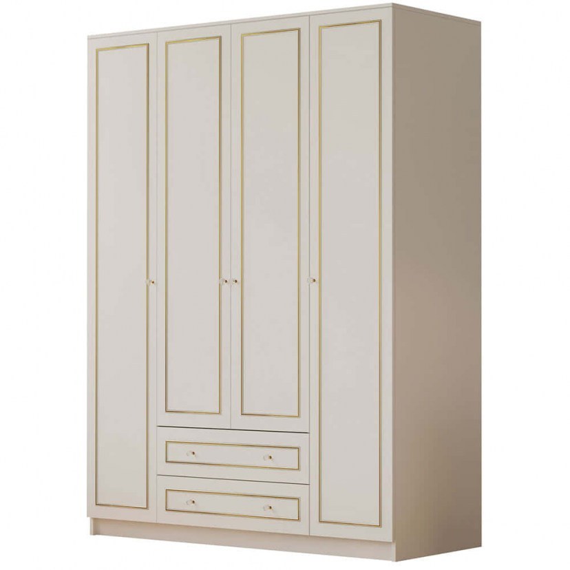 Η Τετράφυλλη Ντουλάπα 167RAB1149 είναι ένα έπιπλο που θα εναρμονιστεί εύκολα τόσο σε μοντέρνα όσο και σε κλασικά δωμάτια και θα προσφέρει μεγάλη χωρητικότητα για την οργάνωση των ρούχων σας. Αποτελείται από δύο κεντρικά φύλλα, που στο εσωτερικό φέρουν μια ράγα αλουμινίου για κρεμάστρες και δύο φύλλα δεξιά και αριστερά, που περιλαμβάνουν ράφια. Στο κάτω μέρος διαθέτει δύο συρτάρια για έξτρα χώρο αποθήκευσης. Το προϊόν παραδίδεται αμοντάριστο στην εργοστασιακή του συσκευασία και με αναλυτικό οδηγό συναρμολόγησης.