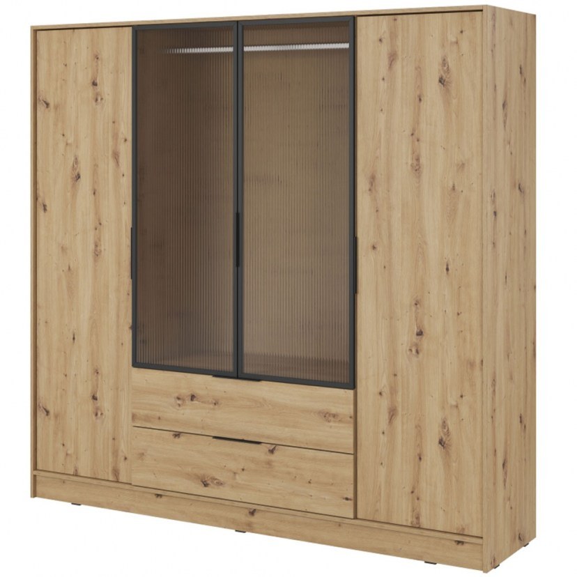 Εμπλουτίστε τον χώρο σας με την Τετράφυλλη Ντουλάπα Kelly Flutes RM Με Ημιδιάφανο Τζάμι, ένα έπιπλο που συνδυάζει άψογα τη μοντέρνα αισθητική με την απόλυτη λειτουργικότητα. Οι δύο μικρές πόρτες με το ημιδιάφανο τζάμι προσδίδουν μια διακριτική κομψότητα και έναν αέρα φινέτσας, ενώ η κατασκευή της από ανάγλυφη μελαμίνη Ε05, ανθεκτική στην υγρασία και τις γρατσουνιές, εγγυάται τη μακροχρόνια αντοχή της. Οι προστατευμένες με ABS άκρες ενισχύουν την ανθεκτικότητα στο πέρασμα του χρόνου. Η ντουλάπα διαθέτει δύο συρτάρια με τηλεσκοπικούς, πλήρως επεκτεινόμενους μηχανισμούς βαρέως τύπου, καθώς και οκτώ ράφια, με τα μεσαία να είναι ρυθμιζόμενα σε πέντε διαφορετικές θέσεις, προσφέροντας απόλυτη ευελιξία για την οργάνωση των ρούχων και των προσωπικών σας αντικειμένων. Το προϊόν παραδίδεται αμοντάριστο.