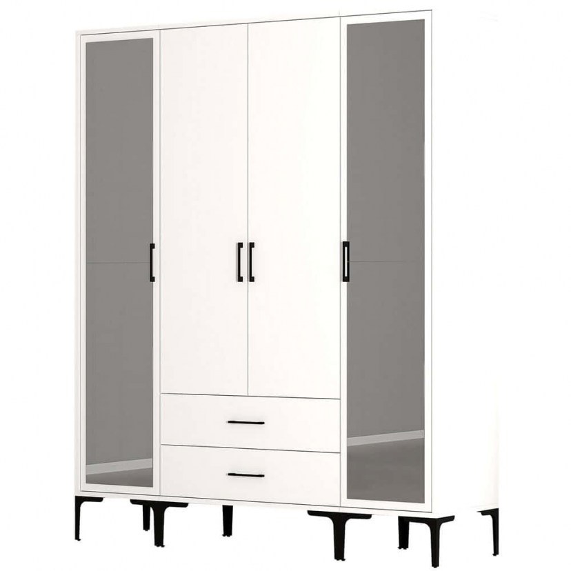 Η Τετράφυλλη Ντουλάπα Kumsal αποτελεί μια κομψή και λειτουργική επιλογή για το υπνοδωμάτιό σας. Με το μοντέρνο σχεδιασμό της, προσφέρει άπλετο χώρο αποθήκευσης για ρούχα και προσωπικά αντικείμενα, ενώ οι καθρέφτες στις εξωτερικές πόρτες όχι μόνο δημιουργούν την ψευδαίσθηση μεγαλύτερου χώρου, αλλά και διευκολύνουν την καθημερινή προετοιμασία. Η στιβαρή κατασκευή και η υψηλή ποιότητα υλικών εγγυώνται ανθεκτικότητα, καθιστώντας τη μια ιδανική επιλογή για όσους αναζητούν ένα μοντέρνο και πρακτικό έπιπλο. Το προϊόν παραδίδεται αμοντάριστο.