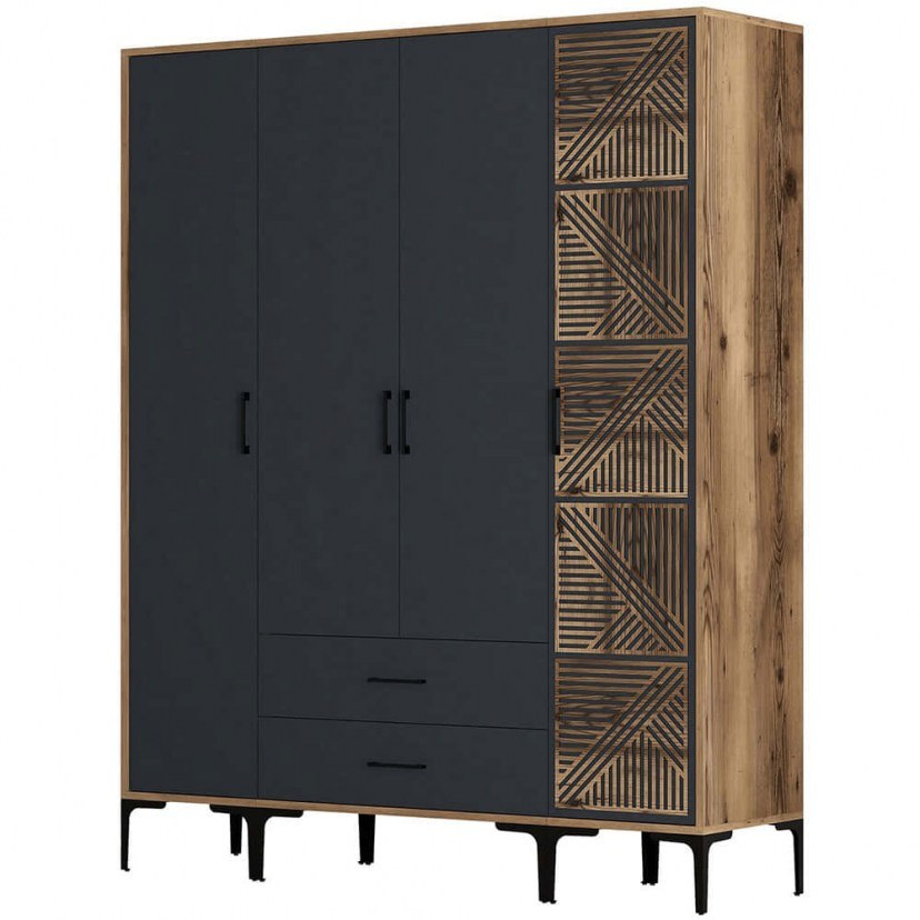 Με μοντέρνο design και ευρύχωρο εσωτερικό χώρο, η Τετράφυλλη Ντουλάπα Kumsal προσφέρει άφθονο χώρο για ρούχα, αξεσουάρ και προσωπικά αντικείμενα, ενώ η κατασκευή της εγγυάται αντοχή και ανθεκτικότητα. Ο λιτός και σύγχρονος σχεδιασμός της ταιριάζει εύκολα σε διάφορα διακοσμητικά στιλ, προσδίδοντας μια αισθητική αρμονία στον χώρο σας. Αυτή η ντουλάπα είναι ιδανική επιλογή για όσους επιδιώκουν μια λειτουργική και ταυτόχρονα αισθητικά ευχάριστη λύση αποθήκευσης. Το προϊόν παραδίδεται αμοντάριστο.