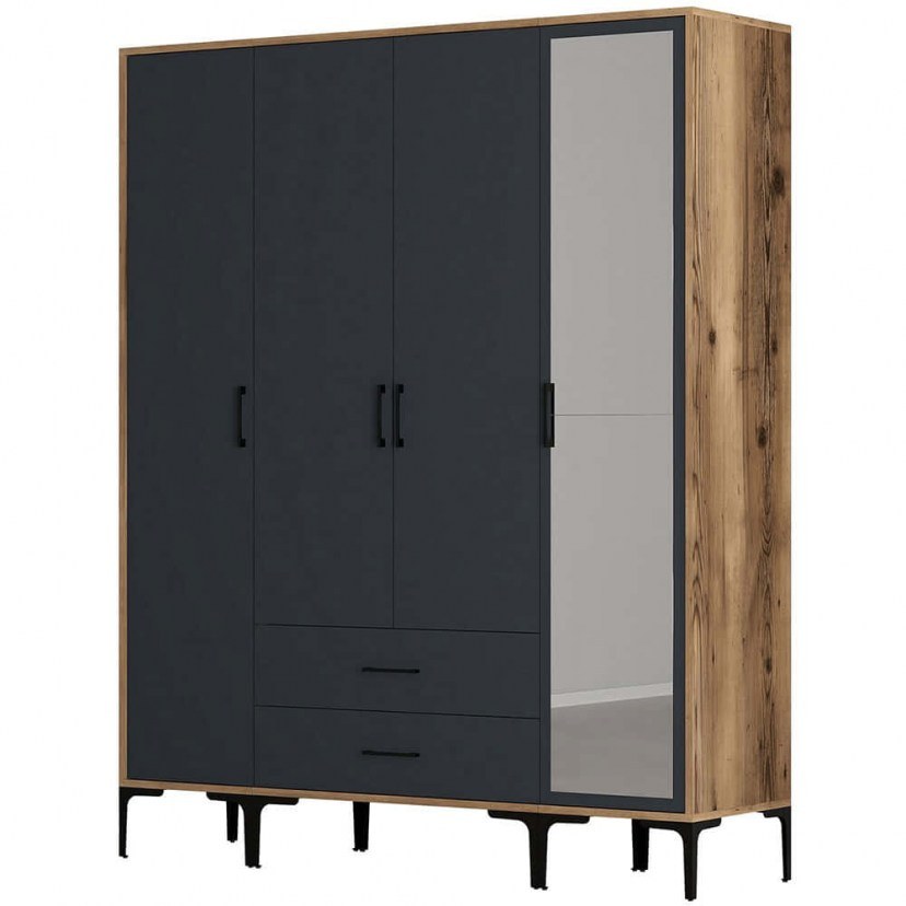 Η Τετράφυλλη ΝτουλάπαKumsal αποτελεί μια πρακτική και αισθητικά ελκυστική επιλογή για το υπνοδωμάτιό σας. Ο σχεδιασμός της περιλαμβάνει τέσσερις πόρτες, με το ένα φύλλο να διαθέτει μεγάλο εξωτερικό καθρέφτη που διευκολύνει την προετοιμασία και προσθέτει αίσθηση χώρου στο δωμάτιο. Οι εσωτερικοί χώροι της ντουλάπας προσφέρουν ράφια και χώρους για κρεμάσματα, επιτρέποντάς σας να οργανώσετε με άνεση τα ρούχα και τα αξεσουάρ σας. Ο ανθεκτικός κατασκευαστικός σχεδιασμός της εξασφαλίζει μακροχρόνια αντοχή και σταθερότητα. Το προϊόν παραδίδεται αμοντάριστο.