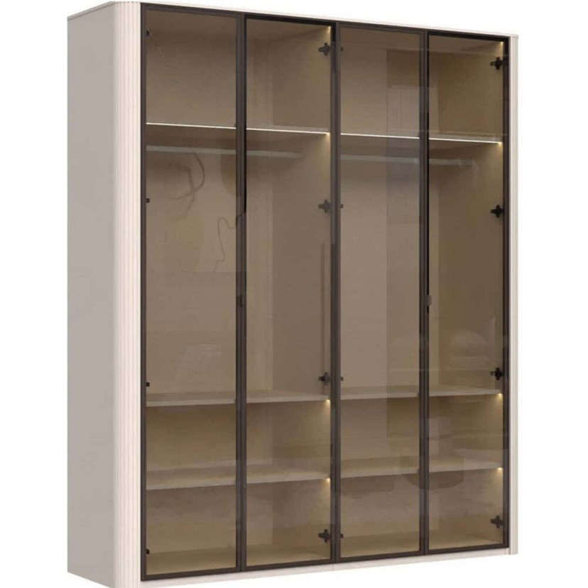 Ντουλάπα Τετράφυλλη Με Φως Led Dutchess Glass 162905379 198x56x225cm Beige-Brown