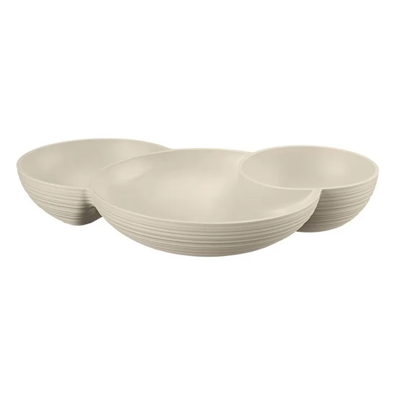 Η Ορντεβιέρα Tierra 3 Θέσεων είναι κατασκευασμένη από ανακυκλωμένο πλαστικό, το οποίο προέρχεται από την ανακύκλωση 8,4 πλαστικών μπουκαλιών νερού μίας χρήσης. Αποτελεί ιδανική επιλογή για το σερβίρισμα ξυρών καρπών, σνακ, γλυκών, σαλτσών κ.α. Οι σκόπιμα ανομοιόμορφες, ανάγλυφες κυκλικές διακοσμήσεις προσδίδουν μια εντυπωσιακά ηχηρή εμφάνιση, που δεν μπορεί παρά να κερδίσει τις εντυπώσεις!