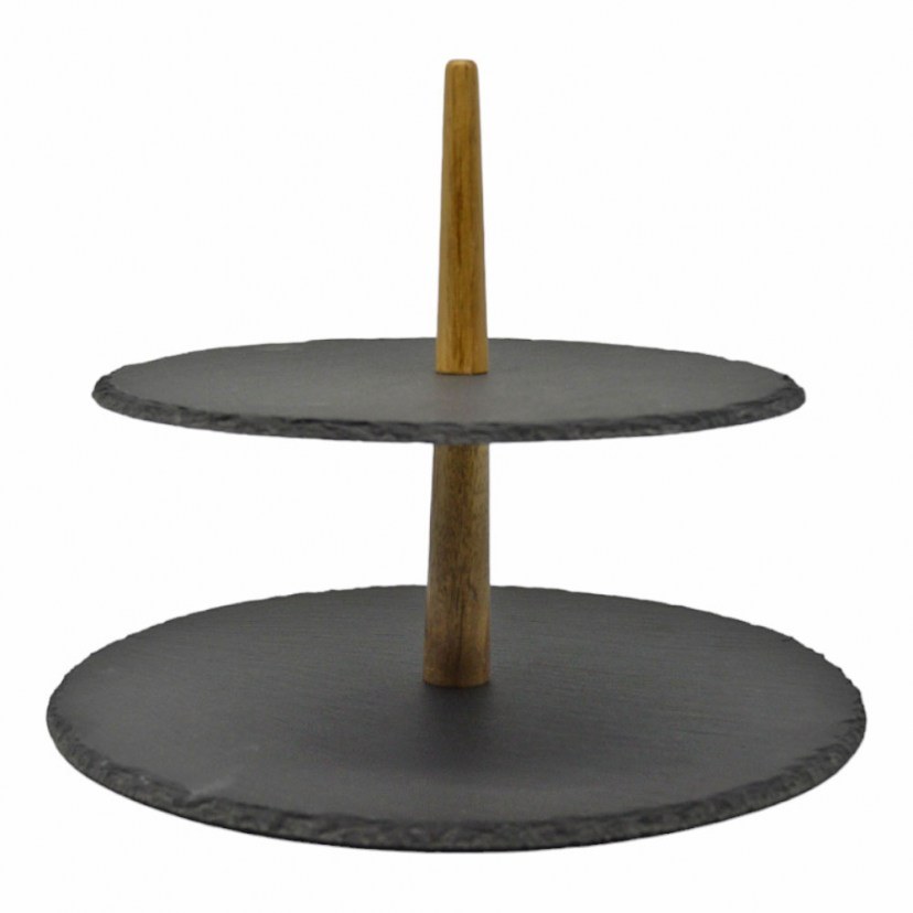 Η Ορντερβιέρα 2 Θέσεων 835478 διαθέτει δύο στρογγυλές επιφάνειες από σχιστόλιθο, γι αυτό είναι ιδανική για να σερβίρετε και να αναδείξετε τα τυριά, τα αλλαντικά και τα ορεκτικά σας με μοναδικό τρόπο! Διαθέτει εργονομική και κομψή βάση από ξύλο ακακίας σε φυσική απόχρωση.