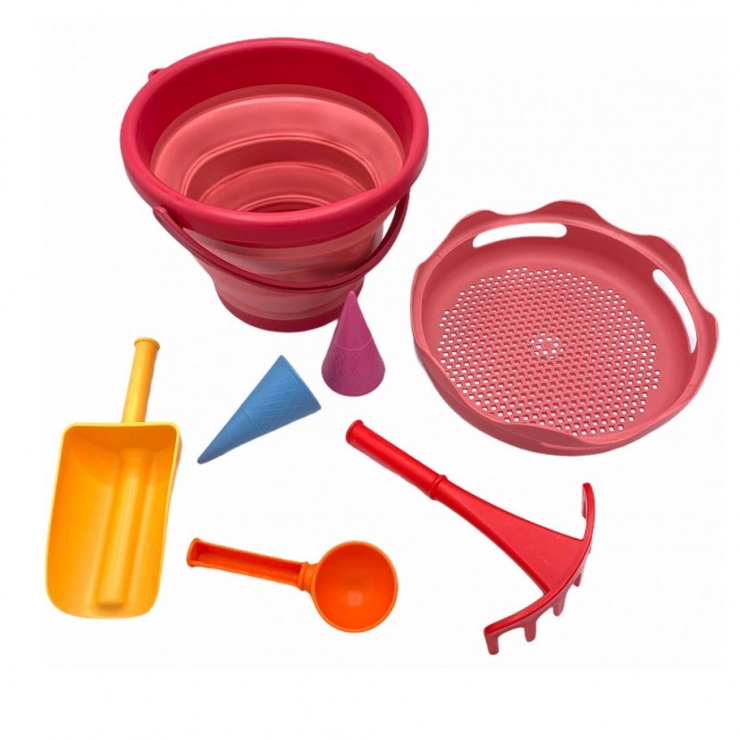 Τα Παιχνίδια Άμμου 7 in 1 σχεδιάστηκαν για να προσφέρουν στο παιδί σας αμέτρητες ευχάριστες ώρες παιχνιδιού στην παραλία. Περιλαμβάνουν κουβά, κόσκινο, φτυάρι, τσουγκράνα, κουτάλα και δύο κώνους. Ο εργονομικός σχεδιασμός των παιχνιδιών τα καθιστά ιδανικά για τα μικρά παιδικά χεράκια. Το κουβαδάκι των 3 λίτρων μετατρέπεται σε τσαντάκι για εύκολη μεταφορά όλων των παιχνιδιών. Κατασκευάζεται από ανθεκτικό πλαστικό χωρίς BPA.