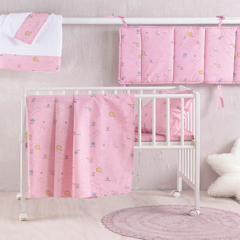 Με την Πάντα Κούνιας Venus, το μωρό σας θα ταξιδεύει σε έναν μαγευτικό κόσμο εμπνευσμένο από το διάστημα. Το εντυπωσιακό σχέδιο της πάντας απεικονίζει πλανήτες, αστέρια και αστερισμούς, δημιουργώντας μια ατμόσφαιρα που προάγει τη φαντασία και την περιέργεια του μωρού σας. Πρόκειται για μία εντυπωσιακή πάντα, η οποία είναι κατασκευασμένη από άριστης ποιότητας βαμβακερό ύφασμα και φέρει λεπτή γέμιση, για να εξασφαλίσει στο αγγελούδι σας προστασία από χτυπήματα και τραυματισμούς.