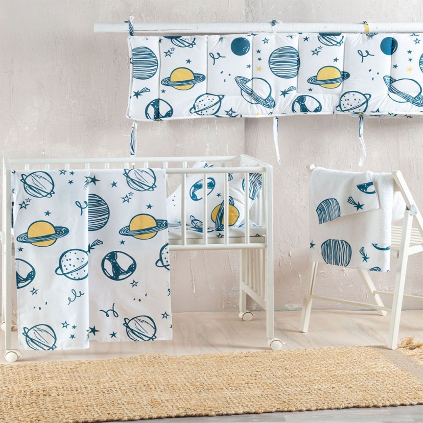 Για εσάς που επιλέγετε τα καλύτερα για το μωρό σας, προτείνουμε το Βρεφικό Πάπλωμα Saturn. Φέρει εντυπωσιακά σχέδια από τον φανταστικό κόσμο του διαστήματος, δημιουργώντας μία γαλήνια ατμόσφαιρα. Η επένδυση από 100% βαμβακερό ύφασμα το καθιστά απαλό, διαπνέον και φιλικό προς το βρεφικό δέρμα.