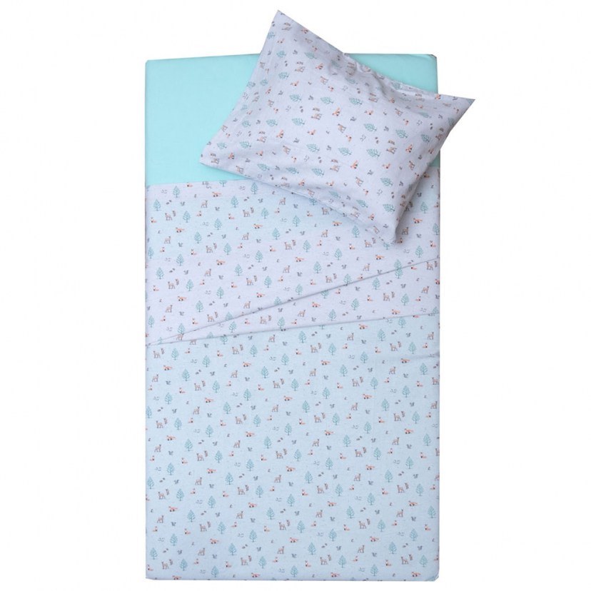 Το Σετ Βρεφική Παπλωματοθήκη 2644 το κοσμούν χαριτωμένες αλεπουδίτσες, ελαφάκια και σκιουράκια, που πλαισιώνονται από δεντράκια και άλλα ζωάκια του δάσους. Πρόκειται για μία παπλωματοθήκη και μία μαξιλαροθήκη, οι οποίες είναι κατασκευασμένες από βαμβακερό ύφασμα με ειδική επεξεργασία που τους χαρίζει φανελένια υφή και στις δύο πλευρές, ώστε να διατηρούν το μωράκι σας άνετο και ζεστό.