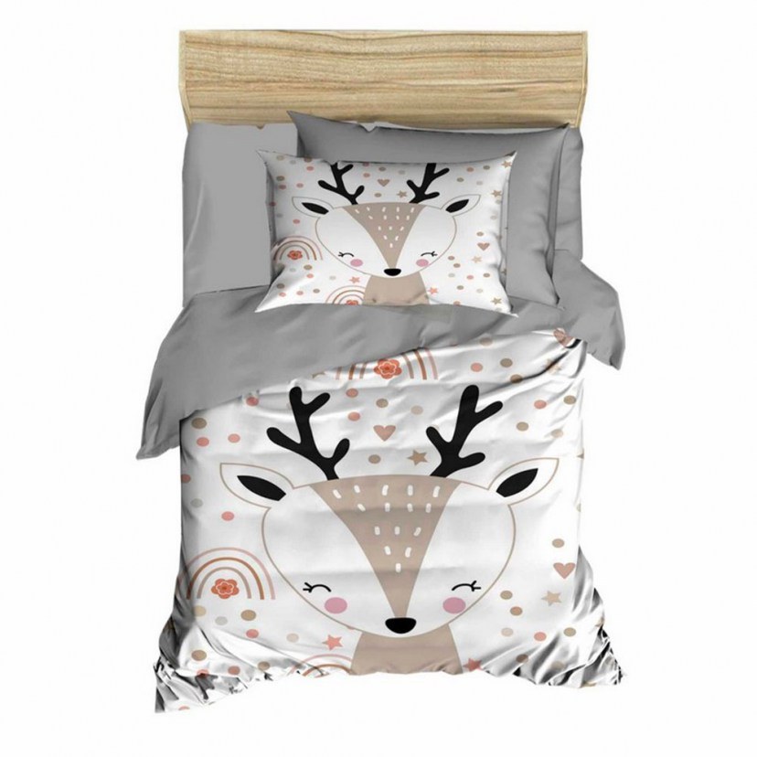 Ανακαλύψτε το Σετ Βρεφική Παπλωματοθήκη PH197, ιδανικό για να προσφέρετε στο μωρό σας έναν ύπνο γεμάτο άνεση και χαρά. Το σετ διαθέτει υψηλής ποιότητας τρισδιάστατη εκτύπωση με ένα χαριτωμένο ελαφάκι, δημιουργώντας μία μαγευτική ατμόσφαιρα στο δωμάτιο του μωρού σας. Η επάνω πλευρά της παπλωματοθήκης και της μαξιλαροθήκης είναι κατασκευασμένη από πολυεστερικό microsatin, προσφέροντας μία μεταξένια απαλή αίσθηση που θα λατρέψει το μωρό σας. Η κάτω πλευρά από 100% βαμβάκι εξασφαλίζει αναπνοή και απαλότητα, ιδανικό για το ευαίσθητο δέρμα του. Το σετ περιλαμβάνει μία παπλωματοθήκη, ένα σεντόνι και μία μαξιλαροθήκη, για να δημιουργήσετε μία ήρεμη και άνετη ατμόσφαιρα για τον ύπνο του μικρού σας.