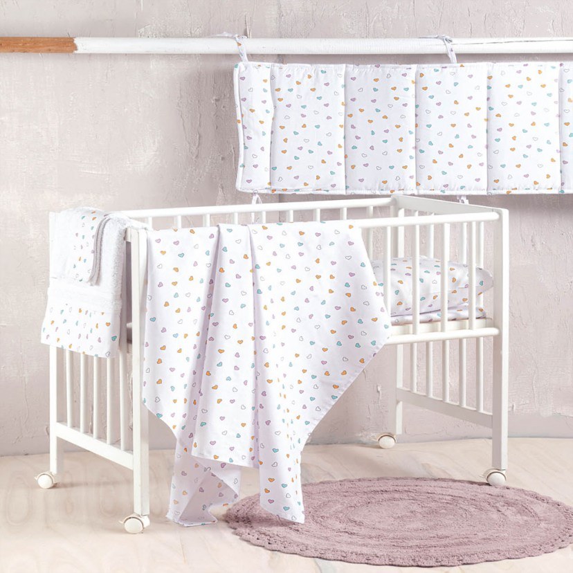 Το Σετ Βρεφική Παπλωματοθήκη Tiny Heart είναι η τέλεια επιλογή για το βρεφικό δωμάτιο, προσθέτοντας μια γλυκιά και παιχνιδιάρικη νότα. Το σχέδιο με τις πολύχρωμες καρδούλες δημιουργεί μια ατμόσφαιρα χαράς και ζεστασιάς. Κατασκευασμένο από αγνά βαμβακερά νήματα, αυτό το σετ προσφέρει μαλακή αίσθηση και άνεση στο μωρό σας, ενώ είναι επίσης σχεδιασμένο για να προσφέρει ασφάλεια και ευεξία. Η υψηλή ποιότητα των υλικών του εξασφαλίζει μια μακρά διάρκεια ζωής και αντοχή, ενώ τα ζωηρά χρώματα παραμένουν φωτεινά ακόμα και μετά από πολλαπλά πλυσίματα.