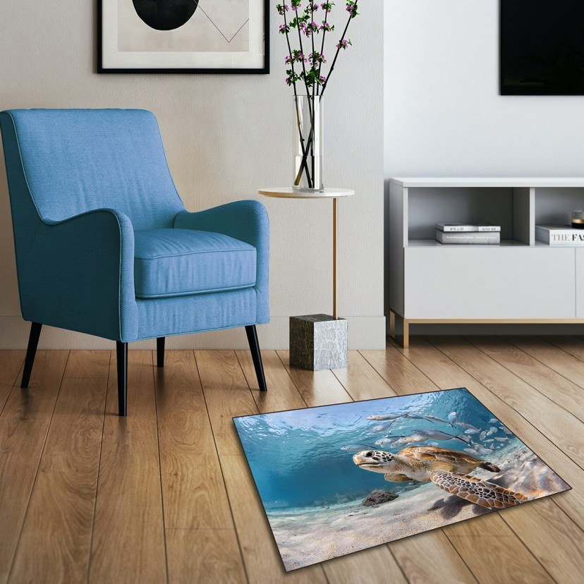 To Αντιολισθητικό Πατάκι Sea Turtle 261 διαθέτει εντυπωσιακό σχέδιο με θαλάσσιες χελώνες, το οποίο είναι τυπωμένο με προηγμένα μέσα ψηφιακής εκτύπωσης. Είναι κατασκευασμένο από πολυεστερικά νήματα που το καθιστούν ανθεκτικό στο χρόνο και στη χρήση και διαθέτει αντιολισθητική βάση, που το καθιστά ασφαλές και σταθερό.