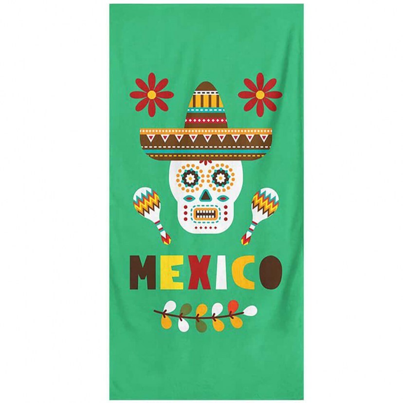 Η Πετσέτα Θαλάσσης 349MNT1124 είναι μία εξαιρετική επιλογή για εσάς που ψάχνετε μία ξεχωριστή επιλογή πετσέτας για την παραλία ή την πισίνα. Διαθέτει σχέδιο με θέμα το Μεξικό και αναφορές στην κουλτούρα του λαού, όπως στην Día de Muertos. Είναι κατασκευασμένη από ποιοτικό ύφασμα 60% βαμβακιού και 40% πολυεστέρα, που την καθιστά απαλή, απορροφητική και ανθεκτική. Πλένεται στο πλυντήριο στους 30°C.