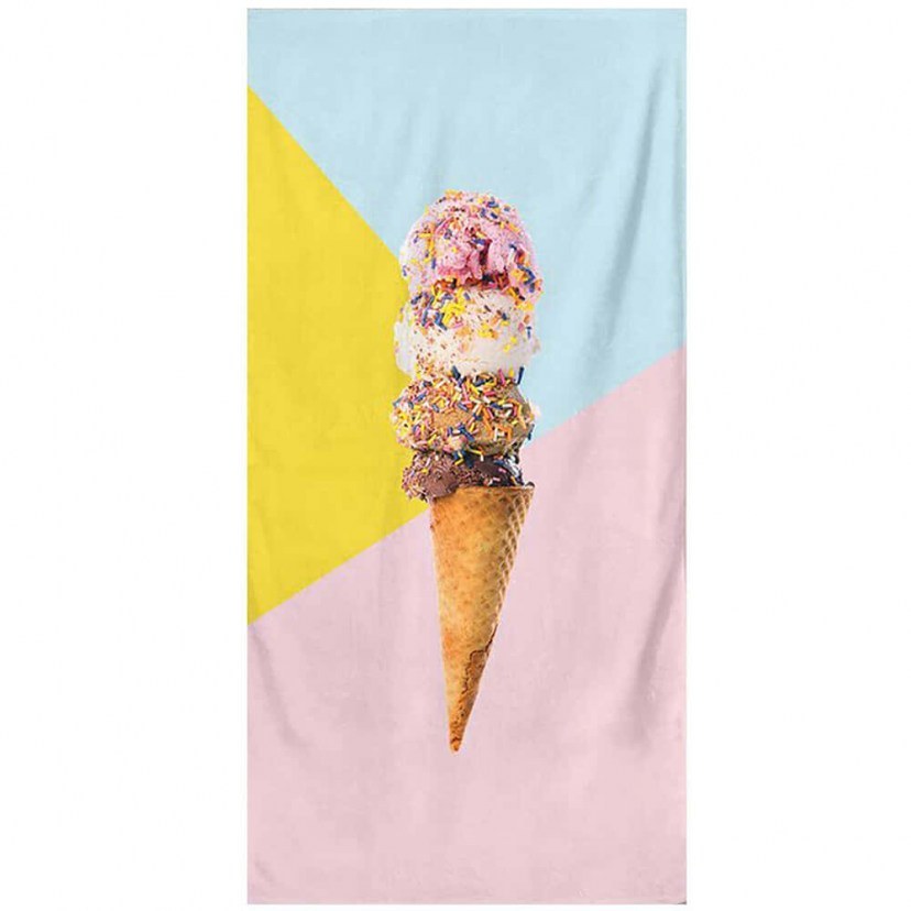 Η Πετσέτα Θαλάσσης 349MNT1125 είναι μία εξαιρετική επιλογή για την παραλία, καθώς διαθέτει 100% καλοκαιρινό design. Φέρει ζωηρά χρώματα και ένα εντυπωσιακό παγωτό σε χωνάκι με τέσσερεις μπάλες! Είναι κατασκευασμένη από ποιοτικό ύφασμα 60% βαμβακιού και 40% πολυεστέρα, που την καθιστά απαλή, απορροφητική και ανθεκτική. Πλένεται στο πλυντήριο στους 30°C.
