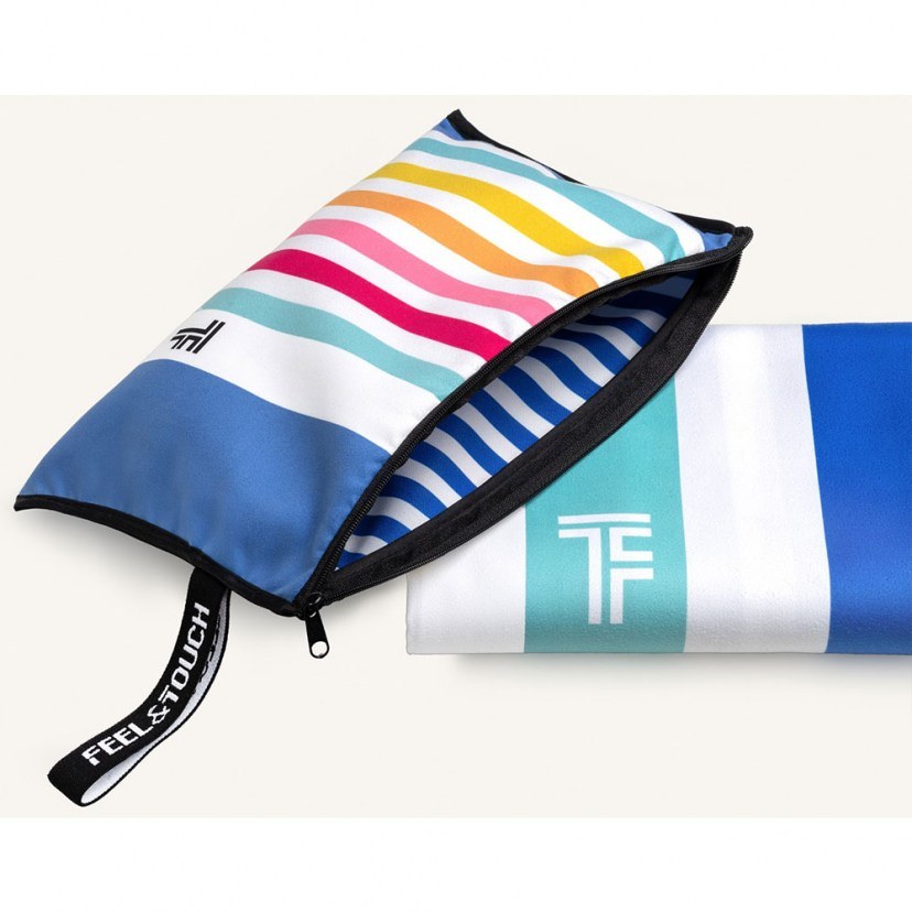 Το Σετ Πετσέτα Θαλάσσης Med Με Νεσεσέρ (2τμχ) περιλαμβάνει μία πετσέτα διπλής όψης με διαφορετικό ριγέ σχέδιο σε κάθε πλευρά και ένα πρακτικό αδιάβροχο pouch με φερμουάρ και λάστιχο-χειρολαβή υψηλής ποιότητας. Κατασκευασμένη από 83% polyester και 17% polyamide, η πετσέτα είναι εξαιρετικά ελαφριά, στεγνώνει γρήγορα, δεν αποθηκεύει άμμο και πιάνει ελάχιστο χώρο, καθιστώντας την ιδανική για την παραλία και τα ταξίδια. Πλένεται στους 40°C ή στο χέρι και σιδερώνεται σε χαμηλή θερμοκρασία. Προτείνεται φυσικό στέγνωμα ή σε στεγνωτήριο σε μεσαία θερμοκρασία. Απαγορεύεται το χλώριο και τα λευκαντικά.