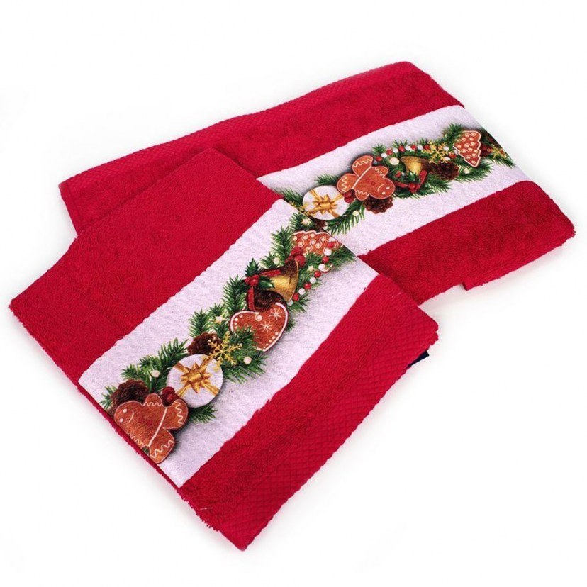 1 Σετ Χριστουγεννιάτικες Πετσέτες: 1 Πετσέτα Χεριών: 30x50 cm & 1 Πετσέτα Προσώπου: 50x90 cm