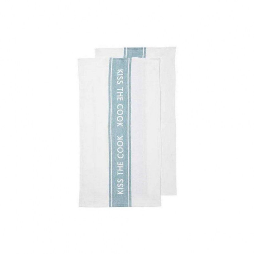 Το Σετ Πετσέτες Κουζίνας Kiss The Cook 33193 περιλαμβάνει δύο πετσέτες με παιχνιδιάρικο σχέδιο και μπορούν να γίνουν δικές σας εύκολα και οικονομικά. Είναι κατασκευασμένες από ανακυκλωμένα βαμβακερά νήματα, γι αυτό είναι ιδιαίτερα απορροφητικές, απαλές και δεν αφήνουν χνούδι, καθιστώντας τις κατάλληλες για χρήση ως ποτηρόπανα αλλά και για το σκούπισμα χεριών και επιφανειών.