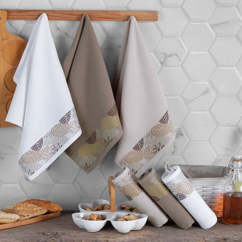 Το Σετ Πετσέτες Κουζίνας Pineapple είναι η τέλεια επιλογή για να προσθέσετε μια δόση φρεσκάδας και χαράς στην κουζίνα σας! Το σετ περιλαμβάνει έξι πετσέτες με όμορφο ζακάρ σχέδιο ανανά, προσφέροντας μία παιχνιδιάρικη και εξωτική αίσθηση στον χώρο. Κατασκευασμένες από βαμβακερό ύφασμα υψηλής ποιότητας, οι πετσέτες αυτές είναι εξαιρετικά απορροφητικές και ανθεκτικές, ιδανικές για τις ανάγκες της κουζίνας σας. Με το ιδιαίτερο σχέδιο και την ποιότητα του υφάσματος, οι Πετσέτες Κουζίνας Pineapple θα αποτελέσουν μια υπέροχη προσθήκη στο καθημερινό σας μαγείρεμα και καθάρισμα.