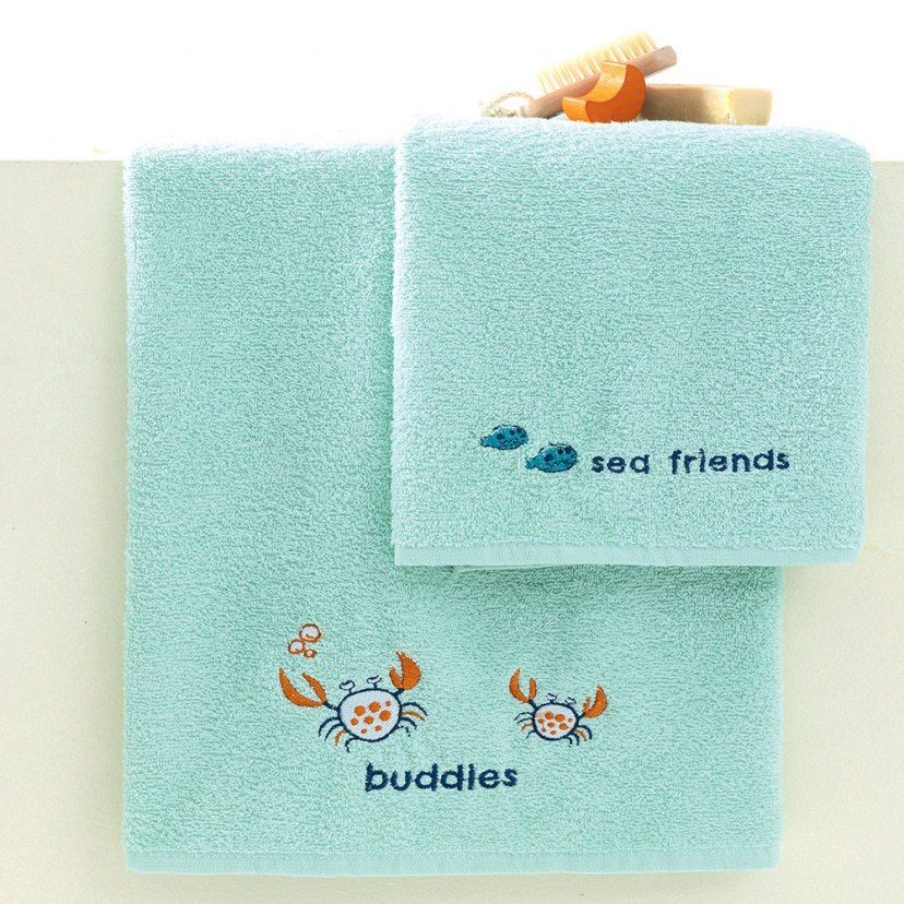 Για εσάς που θέλετε να παρέχετε τα ποιοτικότερα προϊόντα στο παιδί σας, προτείνουμε το Σετ Παιδικές Πετσέτες Crabs (2τμχ). Φέρει χαριτωμένα σχέδια με καβουράκια και επιγραφές. Κατασκευασμένο από 100% βαμβακερό ύφασμα υψηλής ποιότητας 380gsm, προσφέρει μοναδική απορροφητικότητα και εξαιρετικά απαλή αίσθηση στο παιδικό δέρμα. Το σετ περιλαμβάνει μία πετσέτα προσώπου και μία πετσέτα σώματος. Πλένεται στους 30°C και σιδερώνεται σε μέτρια θερμοκρασία. Απαγορεύεται το στεγνωτήριο, το στεγνό καθάρισμα και η χρήση ισχυρού λευκαντικού ή χλωρίου.
