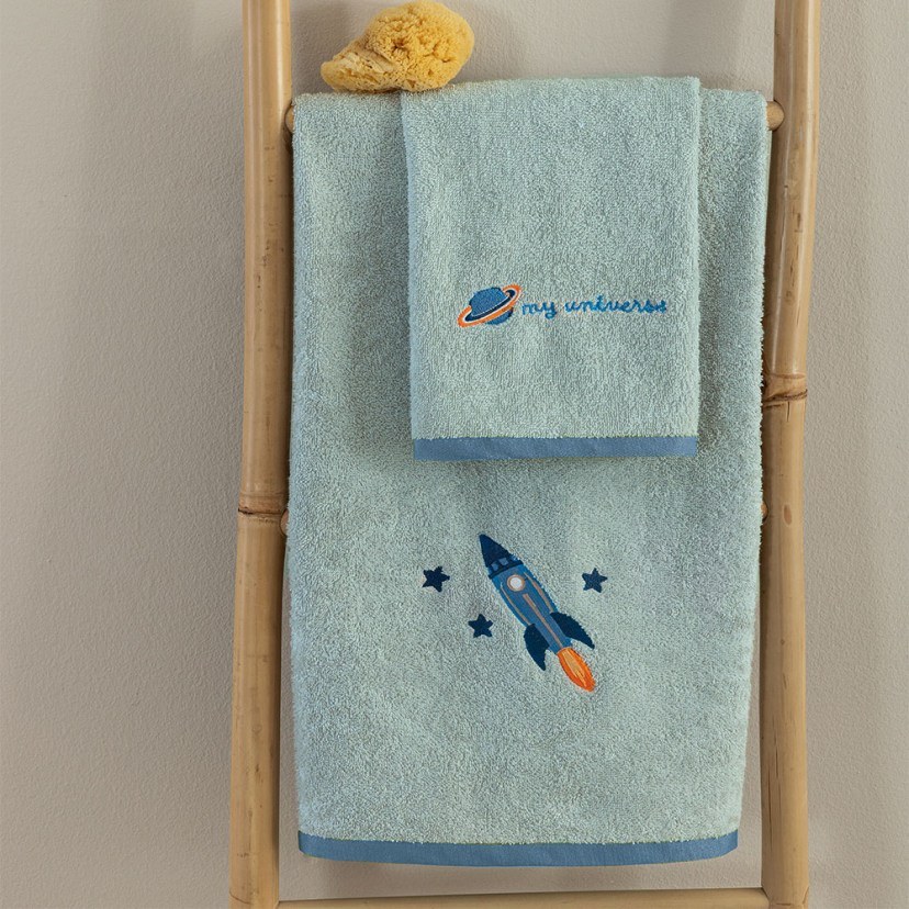 Για εσάς που θέλετε να προσφέρετε τα καλύτερα στο παιδί σας, προτείνουμε το Σετ Παιδικές Πετσέτες Mycosm (2τμχ). Διαθέτει χαριτωμένο κεντητό σχέδιο με θέμα το διάστημα, εντυπωσιάζοντας κάθε μικρό μας φίλο. Φτιαγμένο από 100% βαμβάκι υψηλής ποιότητας 380gsm, προσφέρει απαλή υφή και εξαιρετική απορροφητικότητα. Το σετ περιλαμβάνει μία πετσέτα προσώπου και μία πετσέτα σώματος. Πλένεται στους 30°C και σιδερώνεται σε μέτρια θερμοκρασία. Απαγορεύεται το στεγνωτήριο, το στεγνό καθάρισμα και η χρήση ισχυρού λευκαντικού και χλωρίου.