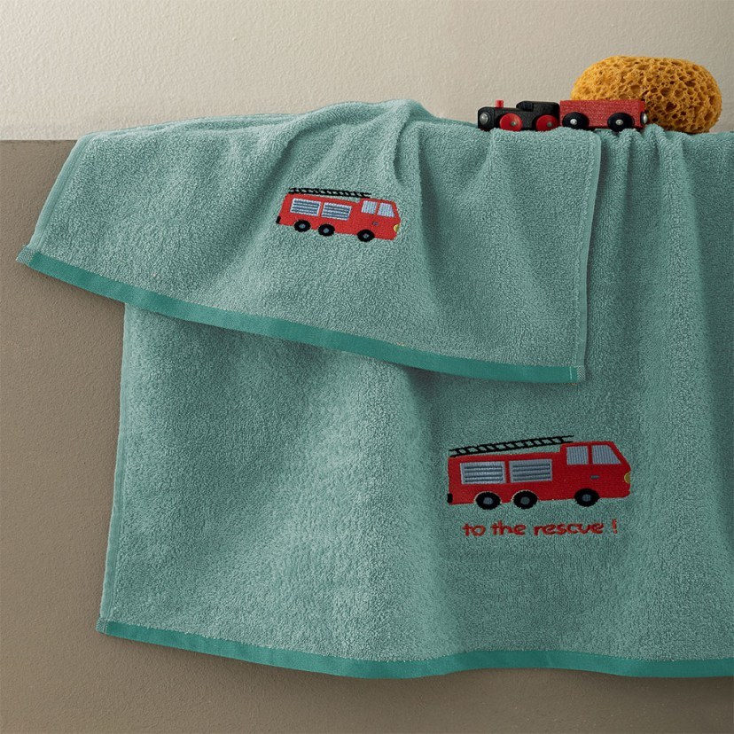 Κάντε πιο διασκεδαστικό το μπάνιο του παιδιού σας με το Σετ Παιδικές Πετσέτες Rescue (2τμχ). Διαθέτει χαριτωμένο κεντητό σχέδιο με πυροσβεστικά οχήματα, που θα προσδώσουν το αίσθημα της περιπέτειας. Φτιαγμένο από 100% βαμβάκι υψηλής ποιότητας 380gsm, προσφέρει απαλή υφή και εξαιρετική απορροφητικότητα. Το σετ περιλαμβάνει μία πετσέτα προσώπου και μία πετσέτα σώματος. Πλένεται στους 30°C και σιδερώνεται σε μέτρια θερμοκρασία. Απαγορεύεται το στεγνωτήριο, το στεγνό καθάρισμα και η χρήση ισχυρού λευκαντικού και χλωρίου.