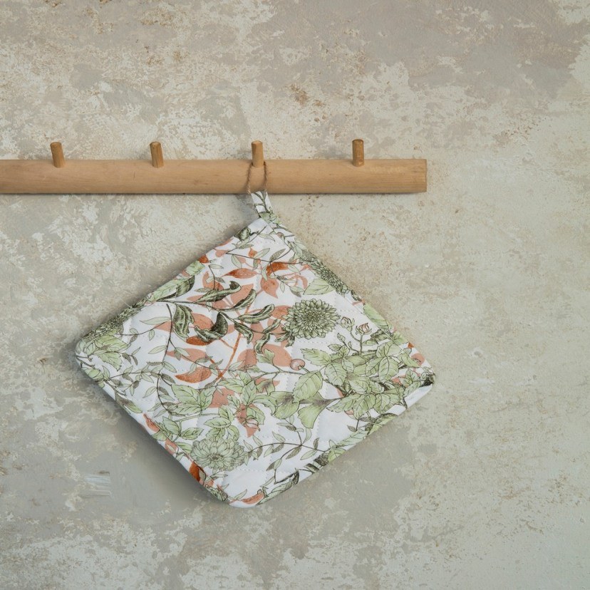 Η Πιάστρα Κουζίνας Lush φέρει εκπληκτικό digital print με λουλούδια και φύλλα που δημιουργούν ένα μοναδικό αισθητικό αποτέλεσμα, ικανό να χαρίσει χρώμα και απαράμιλλο στιλ στον χώρο σας. Είναι κατασκευασμένη από βαμβακερό ύφασμα και διαθέτει λεπτή γέμιση με καπιτονέ ραφές, ώστε να σας προστατεύσει από τα καυτά μαγειρικά σκεύη.