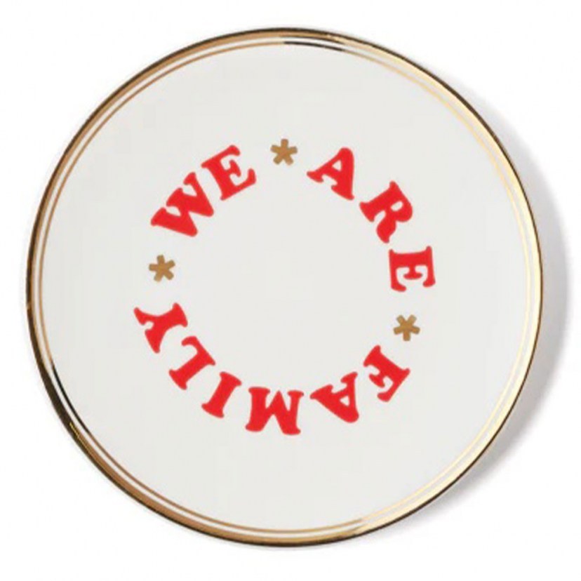 Το Πιάτο Γλυκού We Are Family - La Tavola Scomposta FTB00266 θα το λατρέψετε τόσο για την ποιότητα όσο και για την αισθητική του. Κατασκευάζεται από πορσελάνη και φέρει όμορφη επιγραφή. Είναι κατάλληλο για πλυντήριο πιάτων (έως 250 πλύσεις). Δεν είναι κατάλληλο για χρήση σε φούρνο μικροκυμάτων.