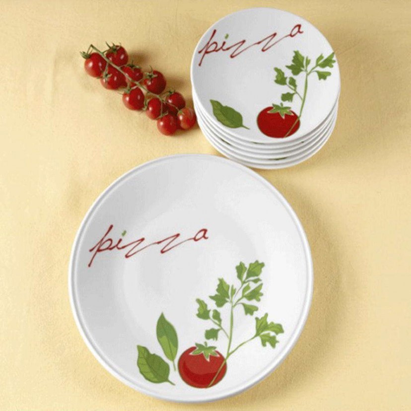 Το Σετ Πιάτα Πίτσας 47.100.35 R είναι ιδανικό για εσάς που λατρεύετε την ιταλική κουζίνα και την πίτσα! Πρόκειται για ένα πανέμορφο σετ, το οποίο είναι κατασκευασμένο από φίνα πορσελάνη και διαθέτει μοντέρνο σχέδιο, εμπνευσμένο από τον κόσμο της ιταλικής γαστρονομίας. Αποτελείται από μία στρογγυλή πιατέλα και έξι ρηχά και στρογγυλά πιάτα.