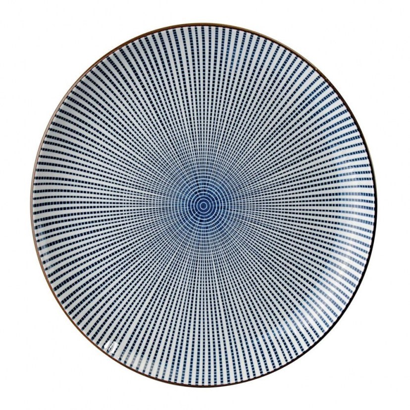 Απογειώστε την αισθητική του τραπεζιού σας και εντυπωσιάστε τους καλεσμένους ή τους πελάτες σας, επιλέγοντας ιδιαίτερα και ποιοτικά πιάτα και ποτήρια σερβιρίσματος από το designdrops! To Πιάτο Sendan Tokusa 2572 είναι ιδανικό για το σερβίρισμα επιδορπίου, ορεκτικών και φρούτων. Με βάση το παραδοσιακό ιαπωνικό θέμα Tokusa (ρίγες), έχει σχεδιαστεί αυτό το πανέμορφο πιάτο με ένα εντυπωσιακό ακτινικό μοτίβο σε λεπτές μπλε γραμμές. Η πορσελάνη είναι ανθεκτική αλλά όχι βαριά, έτσι ώστε να είναι ευχάριστο στη χρήση.