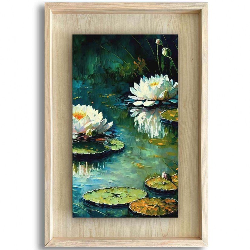 Ο Πίνακας Ahsakca 870CHS1137 αποτυπώνει μια γαλήνια λίμνη με νούφαρα, φέρνοντας την ηρεμία και τη φυσική ομορφιά της φύσης στον χώρο σας. Το σχέδιο εκτυπώνεται με τεχνολογία UV printing, προσφέροντας έντονες αποχρώσεις, καθαρές λεπτομέρειες και μεγάλη αντοχή στον χρόνο. Το φόντο από σφενδάμη MDF ενισχύει τη ζεστασιά και την υφή της σύνθεσης, ενώ η κομψή ξύλινη κορνίζα πλαισιώνει τον πίνακα με διαχρονική αισθητική. Κατασκευασμένος από ανθεκτικό MDF, αποτελεί ιδανική επιλογή για σαλόνι, υπνοδωμάτιο ή γραφείο, χαρίζοντας μια αίσθηση ηρεμίας και φυσικής ομορφιάς στον χώρο.