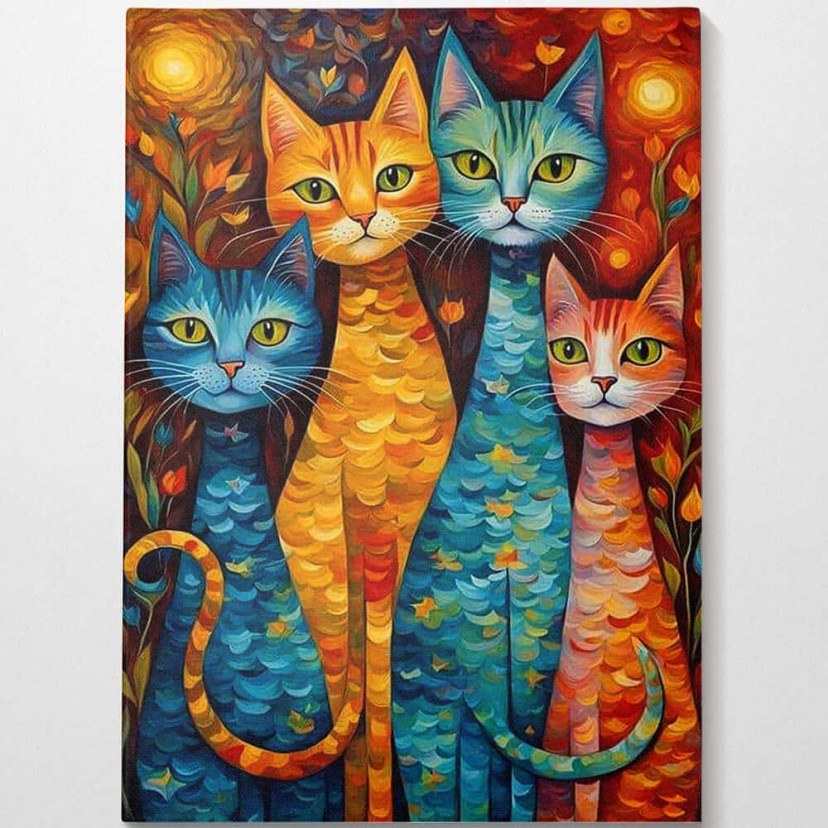 Ο Πίνακας Καμβάς 529TCR2304 ξεχωρίζει με το μοναδικό του θέμα, καθώς απεικονίζει γάτες σε εντυπωσιακά χρώματα που γεμίζουν τον χώρο με ζωντάνια και παιχνιδιάρικη διάθεση. Η τολμηρή χρωματική παλέτα και η έντονη καλλιτεχνική γραφή χαρίζουν μια εκρηκτική ενέργεια στον τοίχο, καθιστώντας τον ιδανικό για όσους θέλουν να δώσουν μια δημιουργική και πρωτότυπη πινελιά στη διακόσμηση του σπιτιού ή του γραφείου τους, ενώ ο καμβάς υψηλής ποιότητας εξασφαλίζει καθαρές λεπτομέρειες και μακροχρόνια αντοχή, μετατρέποντας αυτό το έργο σε σημείο αναφοράς.