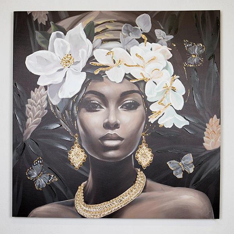 Ο Πίνακας Σε Καμβά Γυναίκα Με Λουλούδια Στο Κεφάλι 755-12045 είναι ένα αριστούργημα που μαγνητίζει τα βλέμματα με τη μοναδική του αισθητική. Απεικονίζει μια εντυπωσιακή γυναικεία φιγούρα με εξωτική εμφάνιση, η οποία περιβάλλεται από πλούσια άνθη στο κεφάλι, συνδυάζοντας την τέχνη με τη φύση. Το ζωηρό σχέδιο και η ζωντανή χρωματική παλέτα προσθέτουν βάθος και χαρακτήρα στον χώρο σας, κάνοντάς τον πιο εκλεπτυσμένο και ενδιαφέρον.