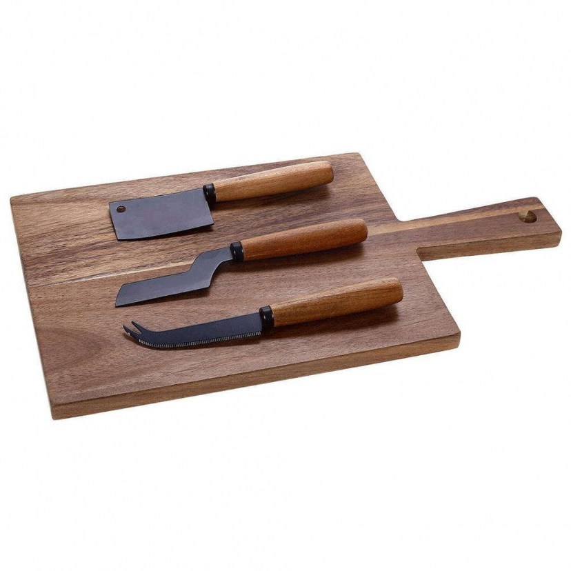 Το Πλατώ Σερβιρίσματος 01.00.304 είναι κατασκευασμένο από ξύλο ακακίας σε φυσική απόχρωση. Συνοδεύεται από τρία ειδικά σχεδιασμένα μαχαίρια, ώστε να κόβετε και να σερβίρετε με άνεση τις αγαπημένες σας αλμυρές λιχουδιές.