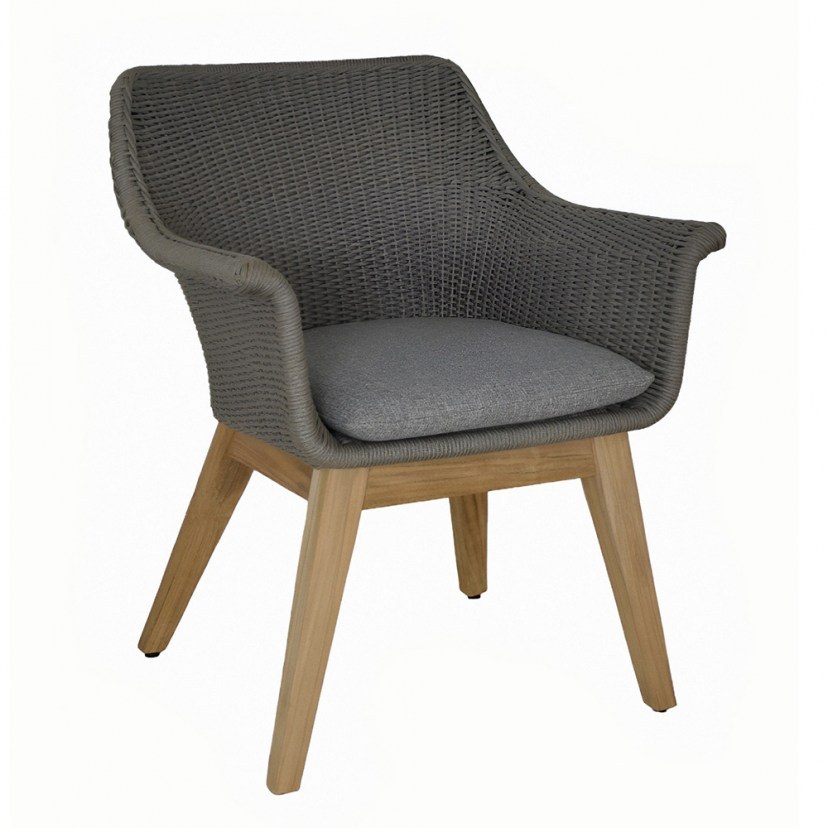 Η Πολυθρόνα Lombok 01-00-2837 συνδυάζει φυσική κομψότητα και αντοχή, με πόδια από μασίφ teak και κάθισμα από αλουμίνιο πλεγμένο με σχοινί σε καλαίσθητη απόχρωση. Συνοδεύεται από μαξιλάρι για επιπλέον άνεση. Είναι ιδανική για χρήση σε εξωτερικούς χώρους, όπως ο κήπος και το μπαλκόνι.