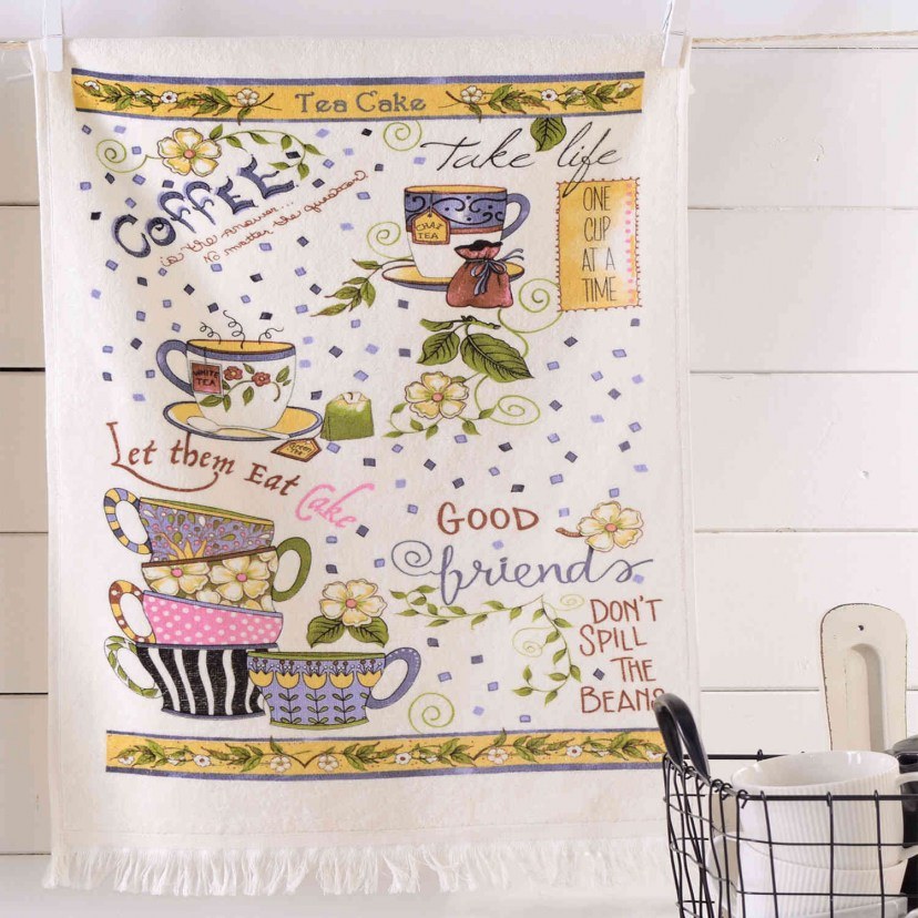 Το ποτηρόπανο της συλλογής Tea & Cake θα φέρει νέο αέρα στη κουζίνα σας. Το παιχνιδιάρικο σχέδιο και τα ζωηρά του χρώματα θα ανεβάσουν τη διάθεσή σας. Θα μείνετε απόλυτα ικανοποιημένοιμε την απορροφητικότητα, τη βελουτέ υφή και την προσιτή τιμή του. Μπορείτε να το αποκτήσετε εύκολα και οικονομικά! Ποιότητα: Ύφασμα 100% Βαμβάκι Διαθέσιμες Διαστάσεις: 1 Ποτηρόπανο 50Χ70cm