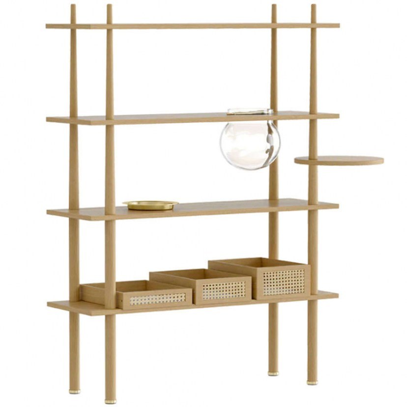 Η Ραφιέρα Stories διαθέτει πληθώρα ραφιών, όπου μπορείτε να εκθέσετε τα αγαπημένα σας διακοσμητικά και να οργανώσετε βιβλία και άλλα μικροαντικείμενα. Διαθέτει τέσσερα ράφια, εκ των οποίων το ένα έχει μια τρύπα με μια ορειχάλκινη πλάκα για να αποθηκεύετε μικροαντικείμενα. Διαθέτει τρία ξύλινα καλάθια που έχουν μπροστινό μέρος από βενετσιάνικο καλάμι που σας διευκολύνει να κρύψετε με όμορφο τρόπο τα ακατάστατα πράγματά σας. Το προϊόν παραδίδεται αμοντάριστο.