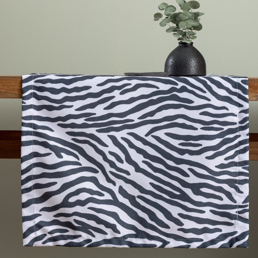 Προσδώστε μια δυναμική και μοντέρνα πινελιά στη διακόσμηση του χώρου σας με το Runner RUN100, μια επιλογή που ξεχωρίζει για το τολμηρό και διαχρονικό ζεβρέ σχέδιό του. Θα εκτιμήσετε την κατασκευή του από 100% πολυεστέρα, η οποία εγγυάται ότι το runner θα διατηρήσει τη ζωντάνια του μοτίβου του και την άψογη φόρμα του ακόμα και μετά από συνεχή χρήση, προσφέροντας ταυτόχρονα μεγάλη ευκολία στη συντήρηση και αντοχή στους λεκέδες. Πλένεται στους 30°C και σιδερώνεται σε μέτρια θερμοκρασία. Απαγορεύεται η χρήση χλωρίου ή λευκαντικού, το στεγνωτήριο και το στεγνό καθάρισμα.