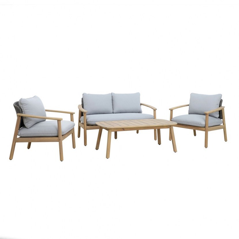 Ανανεώστε τον εξωτερικό σας χώρο με το Σαλόνι Κήπου Freeport-2 01-00-2847 (Σετ 4Τμχ) Με Μαξιλάρια, ένα εκλεπτυσμένο σετ τεσσάρων τεμαχίων που ενσωματώνει τη φυσικότητα του ξύλου με μοντέρνα στοιχεία σχεδίασης. Ο σκελετός από μασίφ ξύλο FSC ακακίας σε κομψή απόχρωση, σε συνδυασμό με την πλέξη από σχοινί, δημιουργεί μια φιλόξενη και σύγχρονη αίσθηση. Τα μαξιλάρια εξωτερικού χώρου εξασφαλίζουν άνεση και στιλ, ενώ το ευρύχωρο τραπεζάκι καφέ ολοκληρώνει το σύνολο με πρακτικότητα. Ιδανική επιλογή για φυσική κομψότητα και καθημερινή χαλάρωση.